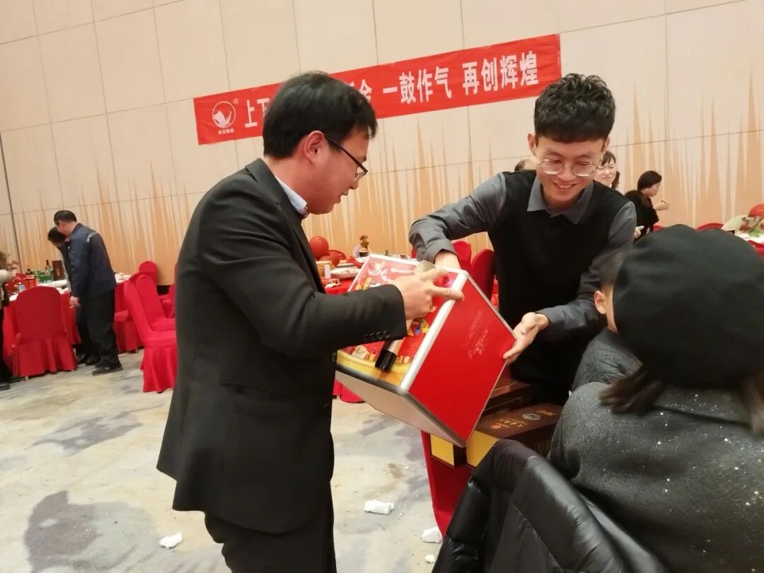 当销售华总为一等奖员工颁奖,何总为季度标兵佩戴绶带并颁发礼品时,现场气氛达到了高潮。