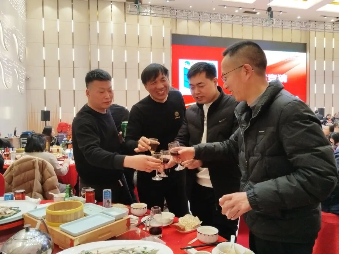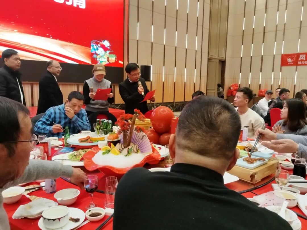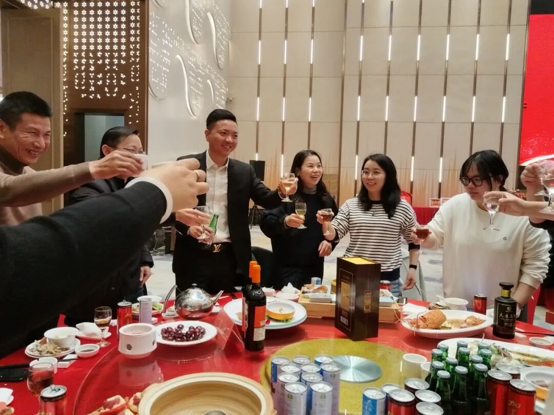 晚宴上,一道道精美漂亮的菜肴令人垂涎欲滴,大家举杯共饮,享受着美食带来的愉悦。华总夫妇率先敬酒,送上新年的祝福与美好的愿景。随后,总经理夫妇也加入敬酒的行列,与员工们亲切交流,传递着温暖与关怀。