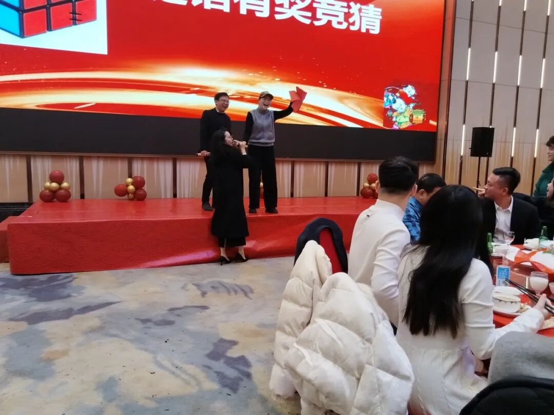 美女帅哥们的谜语竞猜抢答,更是将现场气氛推向了又一个高潮。受邀嘉宾们也兴致勃勃地参与其中,与员工们共同享受这份欢乐与惊喜。