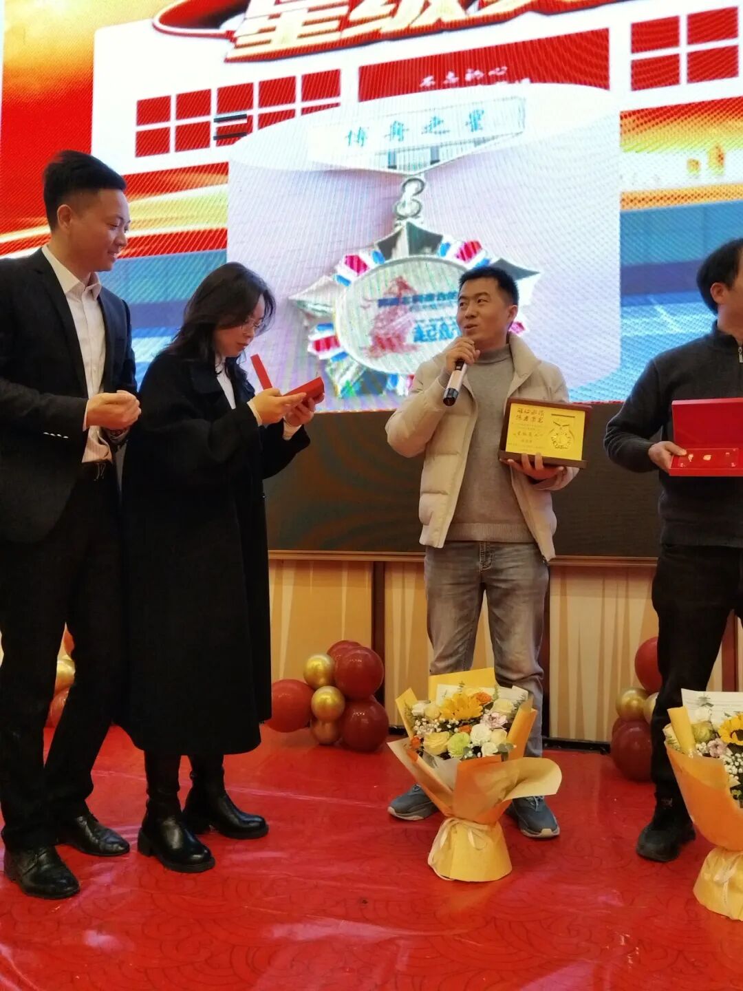 何总还为2024年度星级员工颁发奖金、奖品和鲜花,为各位获奖者送去诚挚祝贺。
