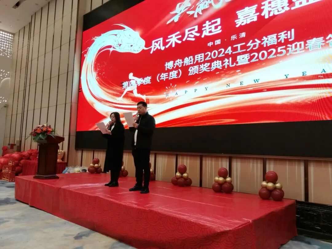 启航新岁,共绘辉煌。yg金沙6038主站船用在这个充满希望的季节里,迎来了它一年一度的盛典——2024工分福利第四季度(年度)颁奖典礼暨2025迎春答谢宴会。此次活动以“风禾尽起,嘉穗盈车”为主题,寓意着公司在全体员工的共同努力下,如同丰收的田野,满载而归,同时也寄托了对未来一年更加繁荣昌盛的美好愿景。