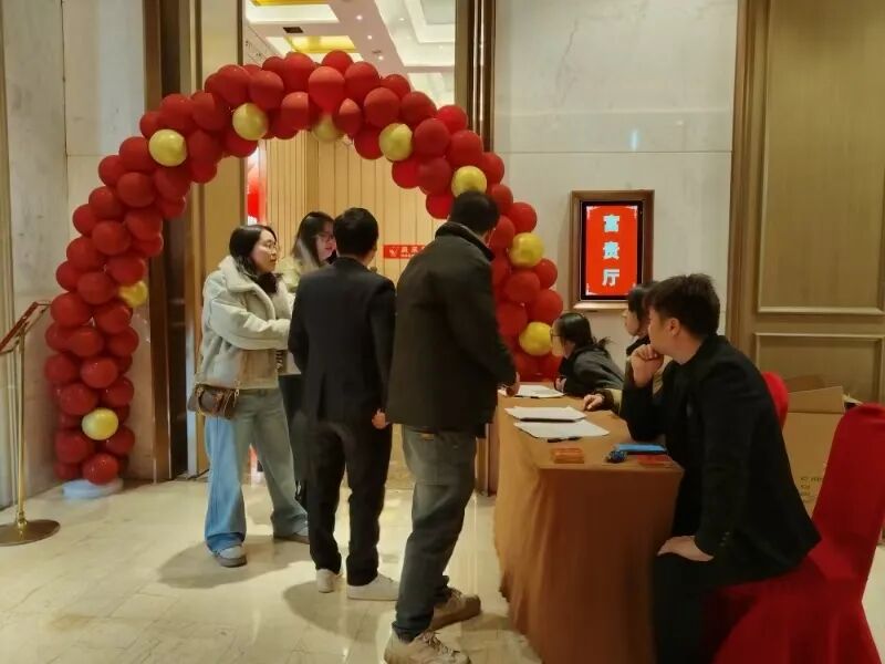 活动当天,宴会厅内早已布置得喜气洋洋。员工们身着节日盛装,带着对荣誉的期待与对团队的归属感,陆续签到入场。签到区不仅摆放着精美的签到簿,还有各式各样的礼品展示,其中最引人注目的是星级员工奖牌、金质奖品以及象征荣誉的鲜花,它们静静地等待着它们的主人。员工们在等待典礼开始的同时,相互交谈,合影留念,现场气氛热烈而温馨。